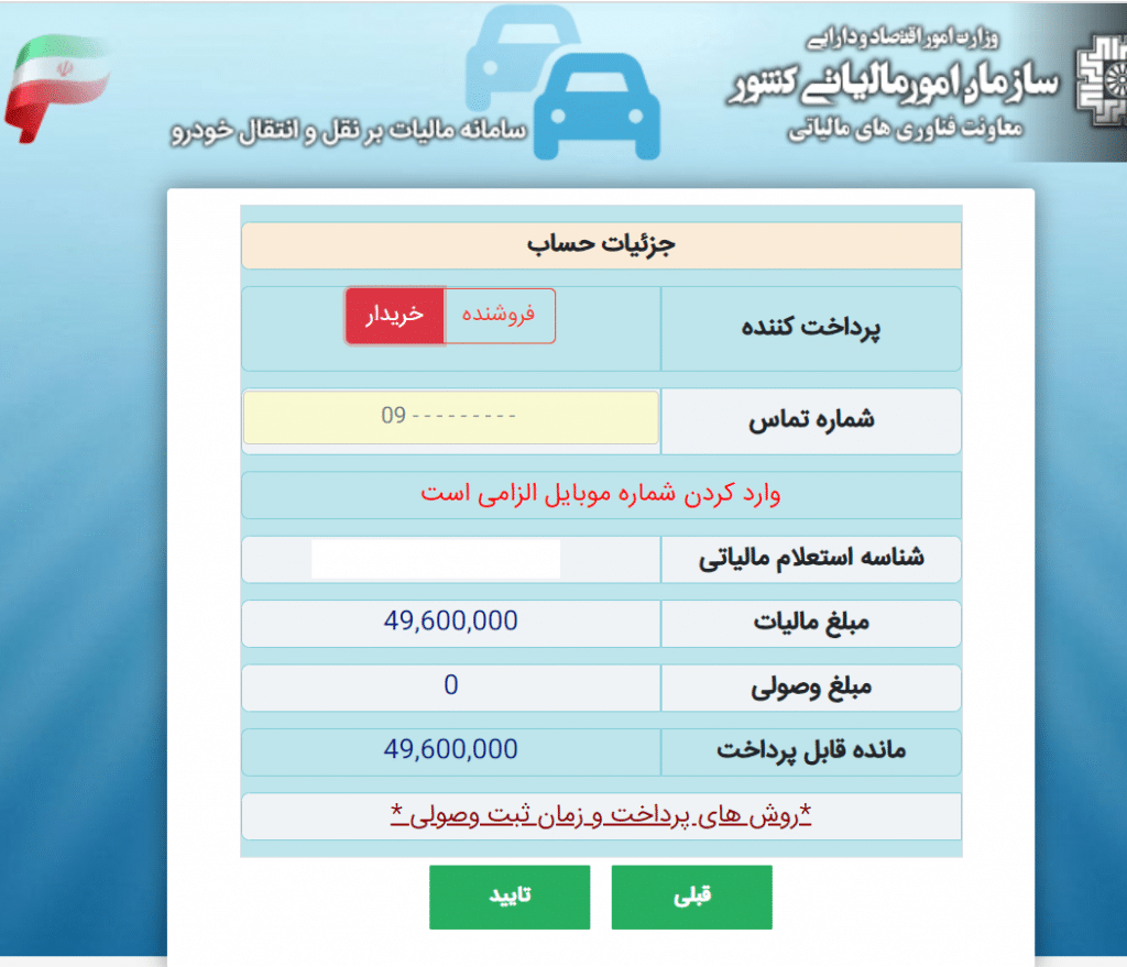 ### **نحوه محاسبه مالیات نقل و انتقال خودرو**
